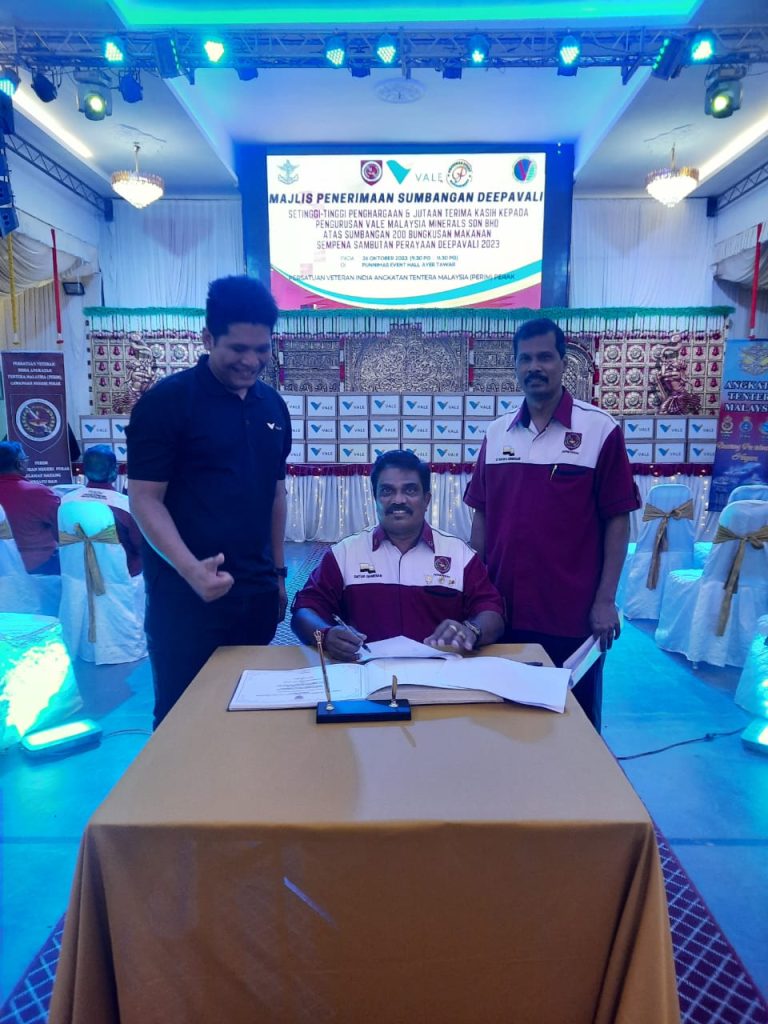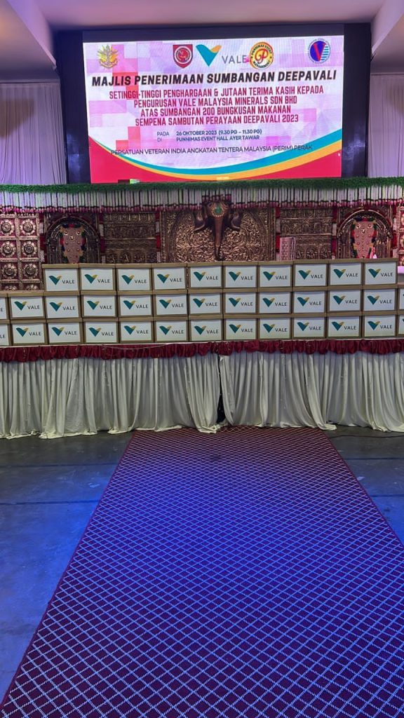 Majlis Penerimaan Sumbangan Deepavali daripada Vale Malaysia Minerals Sdn Bhd telah dilaksanakan pada hari ini 26 Okt 23 di Punnimas Event Hall, Ayer Tawar.