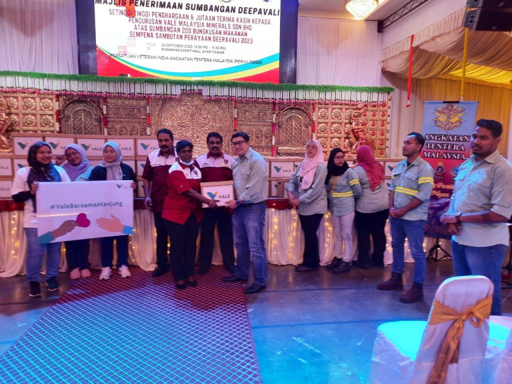 Dengan berbesar hati Syarikat Vale telah menyumbangkan sejumlah 200 kotak makanan sempena sambutan Deepavali pada tahun ini untuk diagihkan kepada balu dan VKU PERIM Perak.